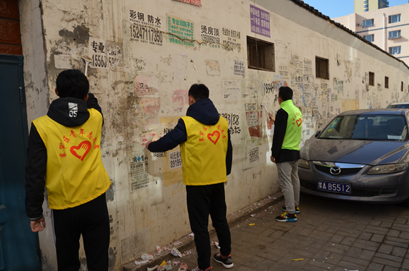 上午9点30分我院2015级体育教育汉班50名同学来到二毛社区服务中心,在赛罕区团委工作人员以及社区服务人员的带领下同学们分工明确,团结协作,手持各类卫生工具,对小区内卫生较差的死角进行集中清洁。随后,同学们又对小区里的电线杆、垃圾箱等地方的小广告进行了彻底的铲除。在寒冷的天气中,我院学生表现出极大的热情与责任感,整个志愿服务氛围轻松愉快,得到了社区领导的一致好评,为社区的居民创造了干净整洁、舒适温馨的家园。